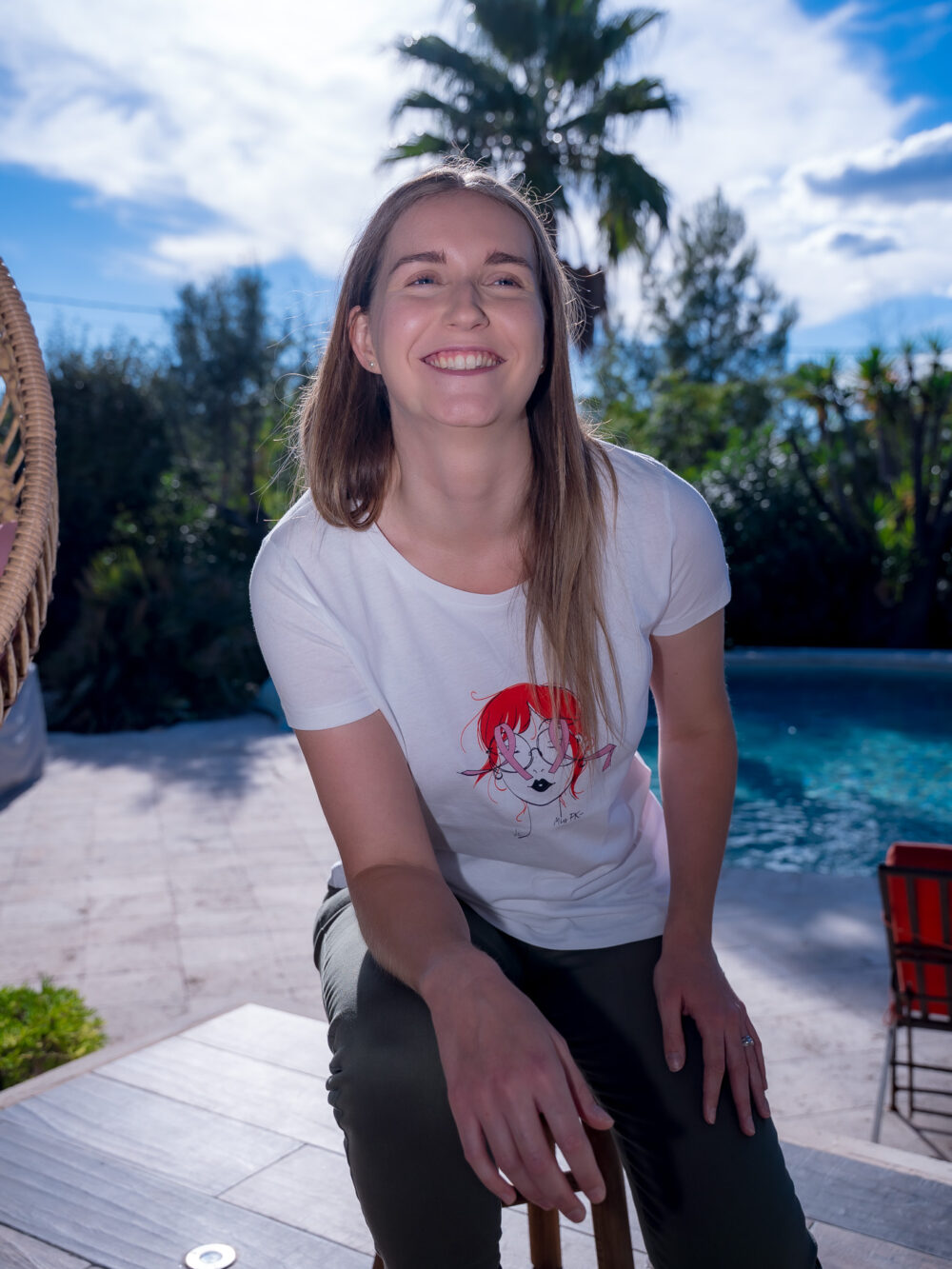 Cette collection capsule a été pensée comme un hommage vibrant à toutes les femmes touchées de près ou de loin par le cancer du sein. En partenariat avec la Ligue contre le cancer Comité du Var, chaque t-shirt devient un geste solidaire: 5 € sont reversés à la Ligue pour chaque achat.